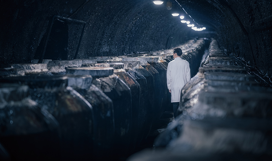 ? ? 新蒸馏出的原酒,酒体处于一种“极阳状态”,必须经过漫长的贮存与陈酿,以削弱酒体的阳刚之气。图片展示了泸州老窖在山洞中采用陶坛陈酿“国窖1573”新酒。