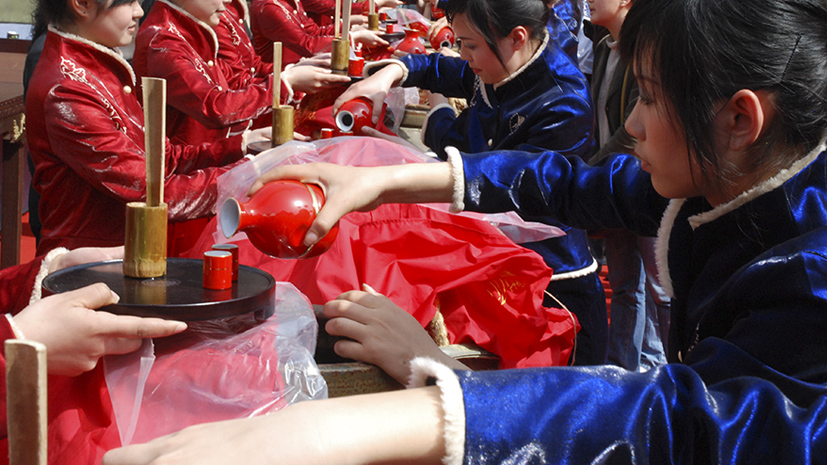 大典主要包含三个环节:祭祀仪式、拜师仪式、春酿封藏仪式。祭祖,虔心以敬,告慰先人,感恩天地;拜师,循“尊师重道”之传统,将中国白酒“拜师学艺”的传承方式尊以礼制;封藏,将当年新酿的国窖1573春酿原酒入洞封藏,坚守农耕传统,自然酿造。