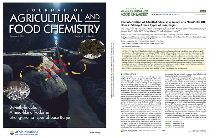 ? ? ?近日,公司与北京工商大学孙宝国院士团队的合作项目,在美国化学学会期刊Journal of Agricultural and Food Chemistry最新一期(2018,Volume 66,Issue 48)发表了题为 “Characterization of 3-Methylindole as a Source of a ‘Mud’-like Off-Odor in Strong-Aroma Types of Base Baijiu” 的封面论文。