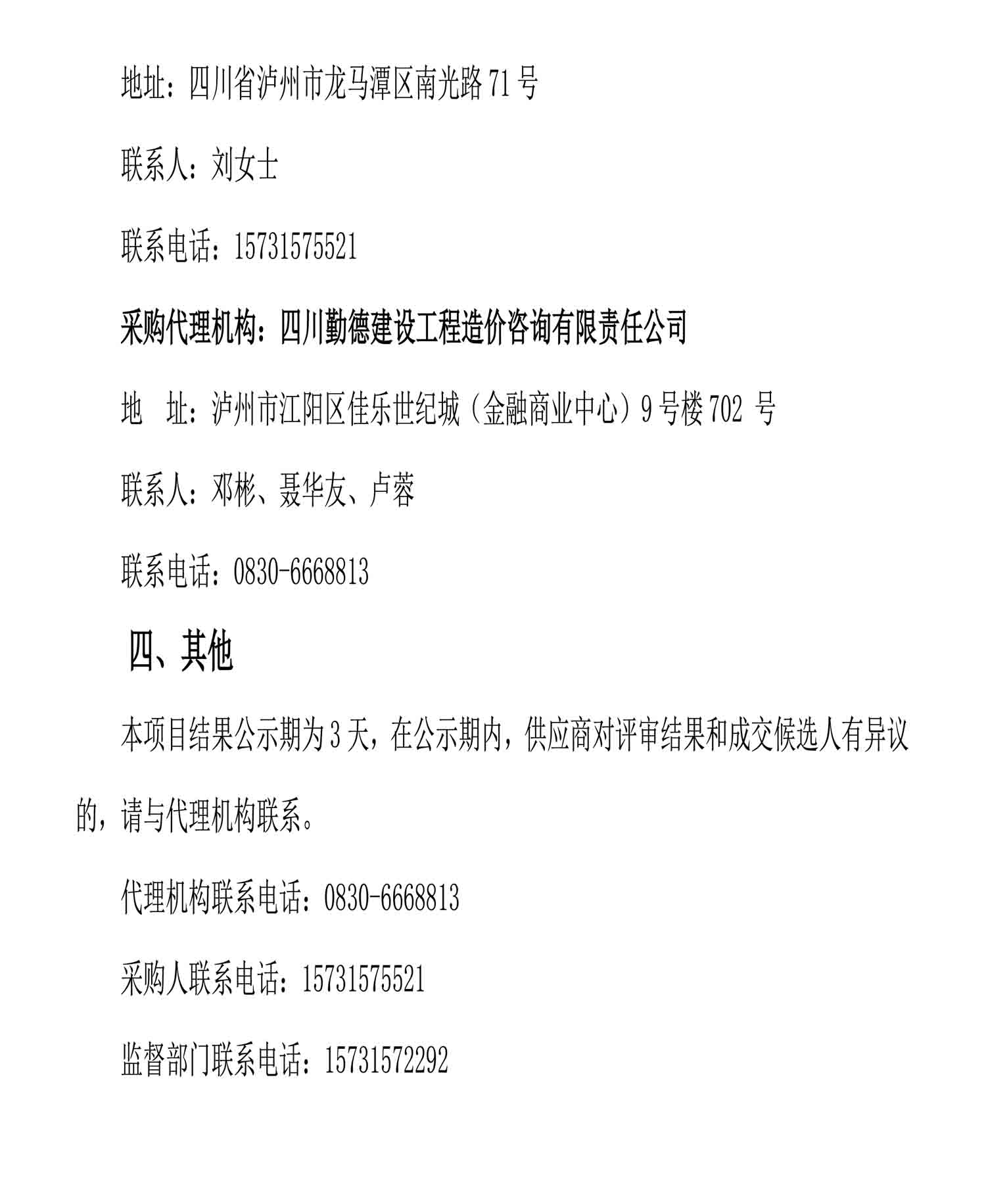 泸州老窖酿酒有限责任公司2024年7月备件采购成交候选人及结果公示