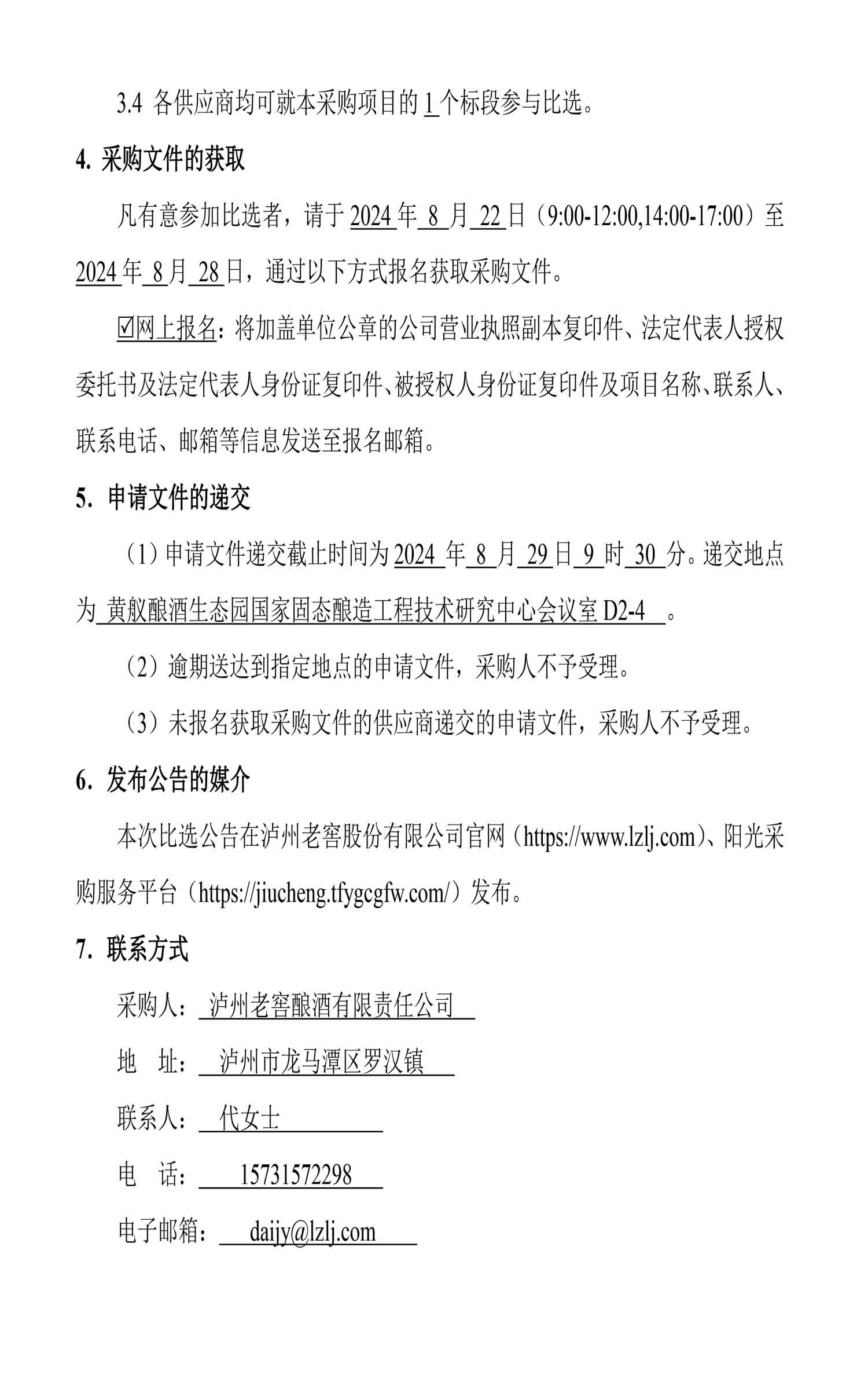 泸州老窖酿酒有限责任公司黄舣酿酒中心量水盘管优化项目比选公告