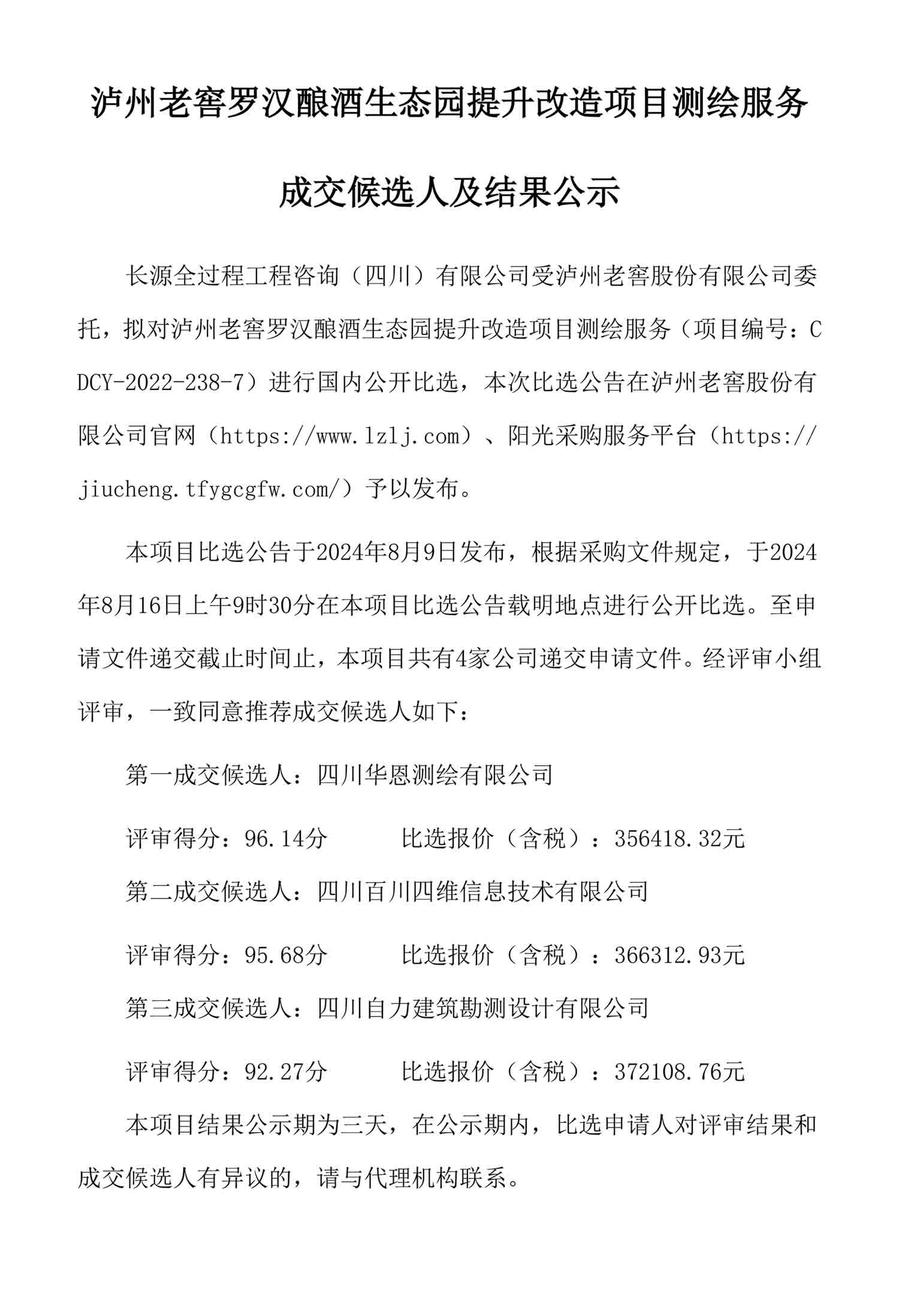 泸州老窖罗汉酿酒生态园提升改造项目测绘服务成交候选人及结果公示