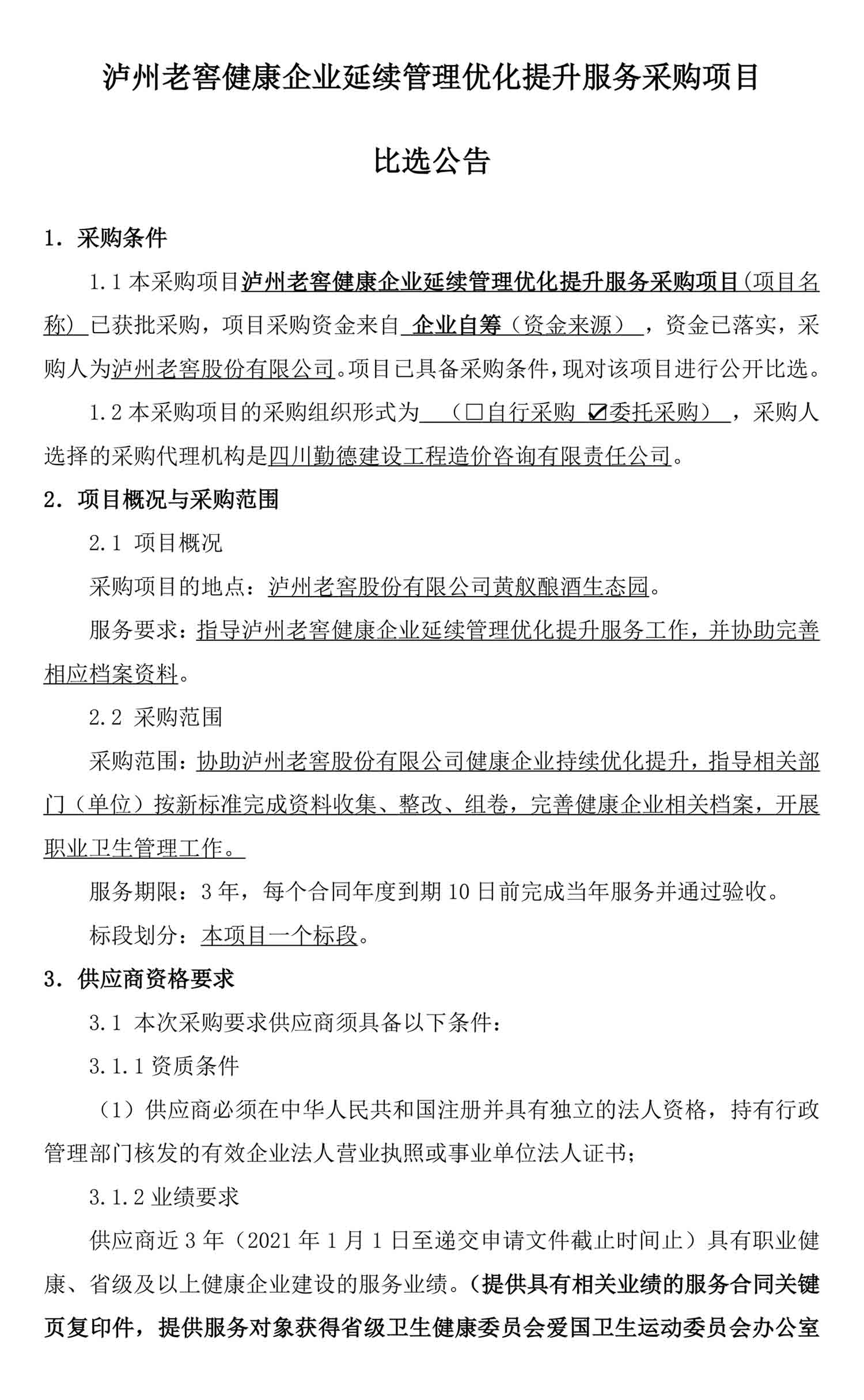 泸州老窖健康企业延续管理优化提升服务采购项目比选公告