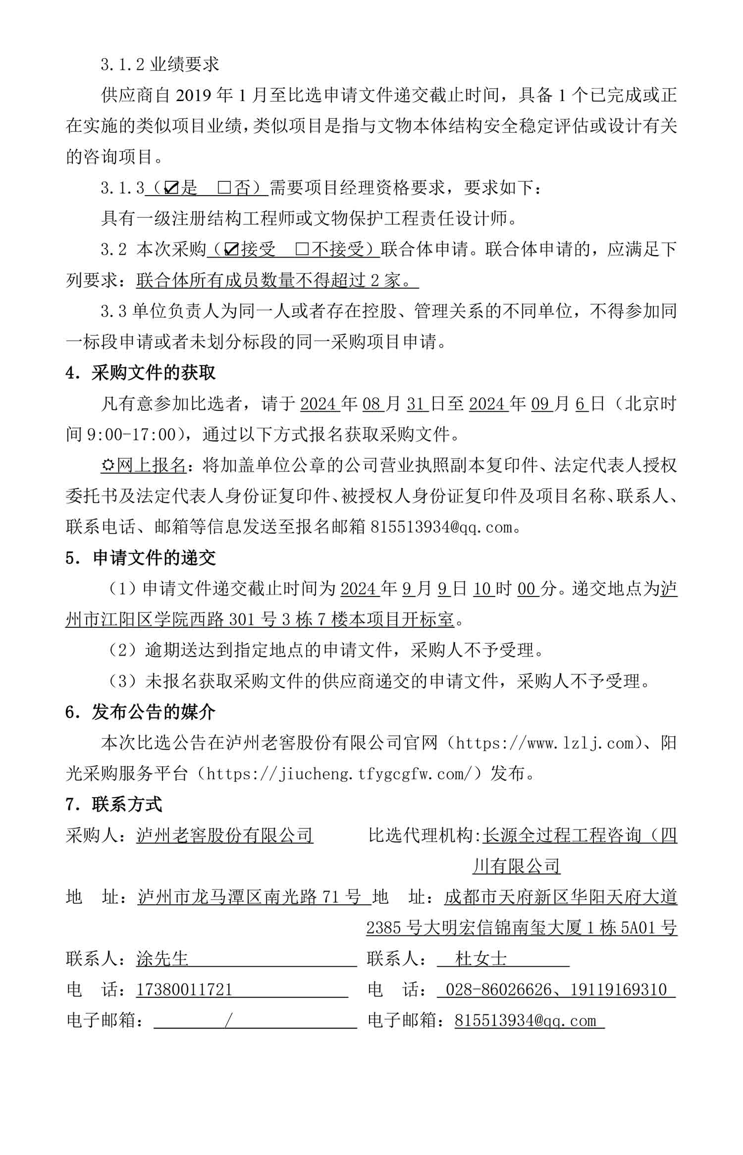 泸州老窖历史文化产业园暨四川中国白酒博物馆项目凤凰山内部龙泉洞本体保护施工模拟影响评估咨询比选公告