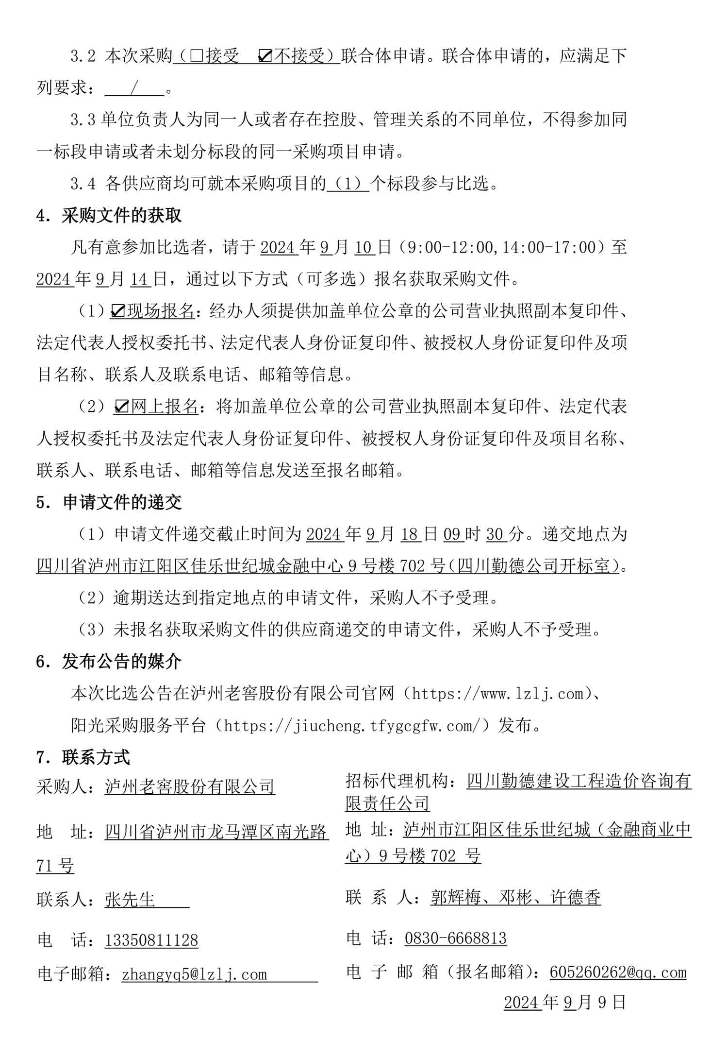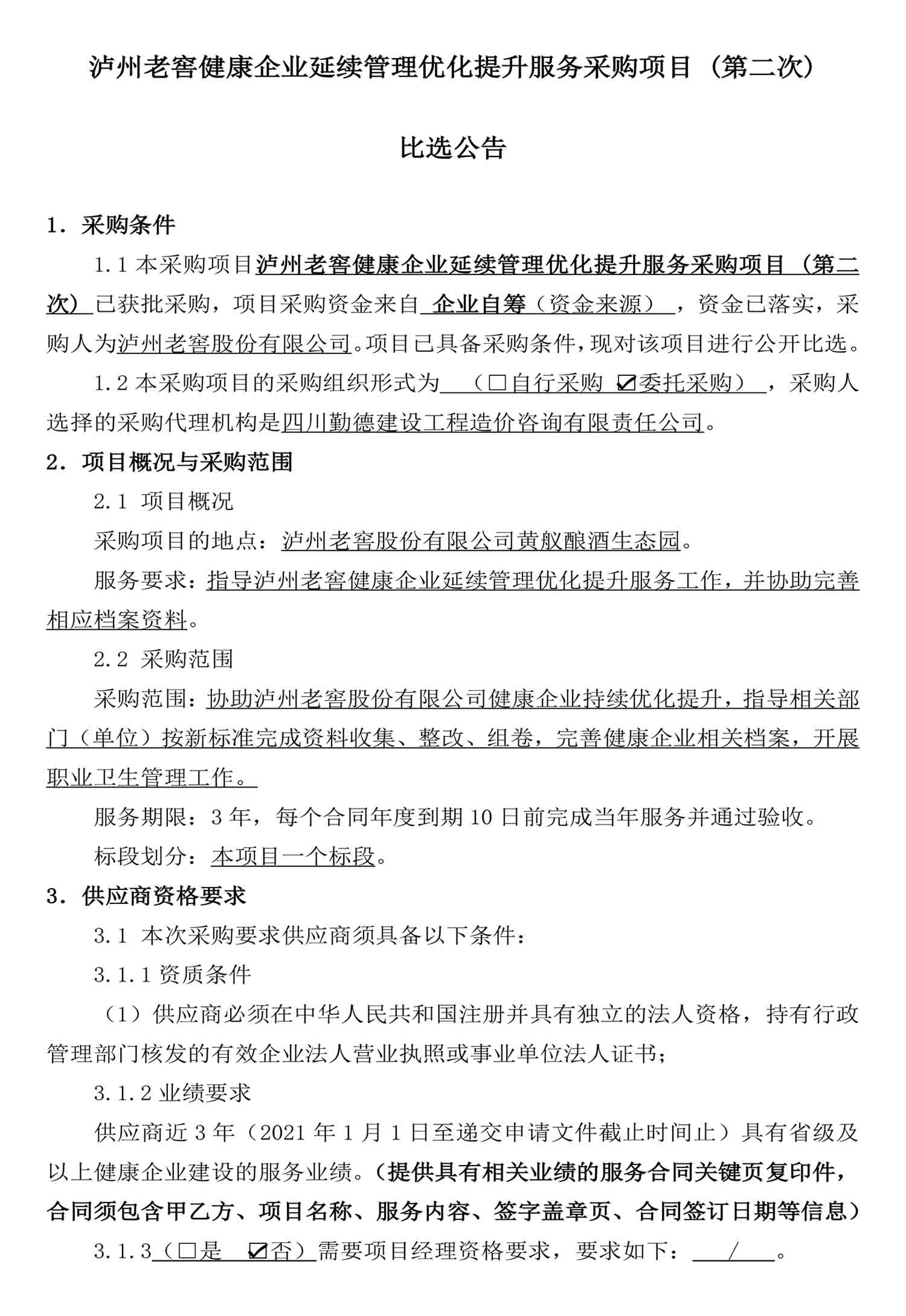 泸州老窖健康企业延续管理优化提升服务采购项目(第二次)比选公告