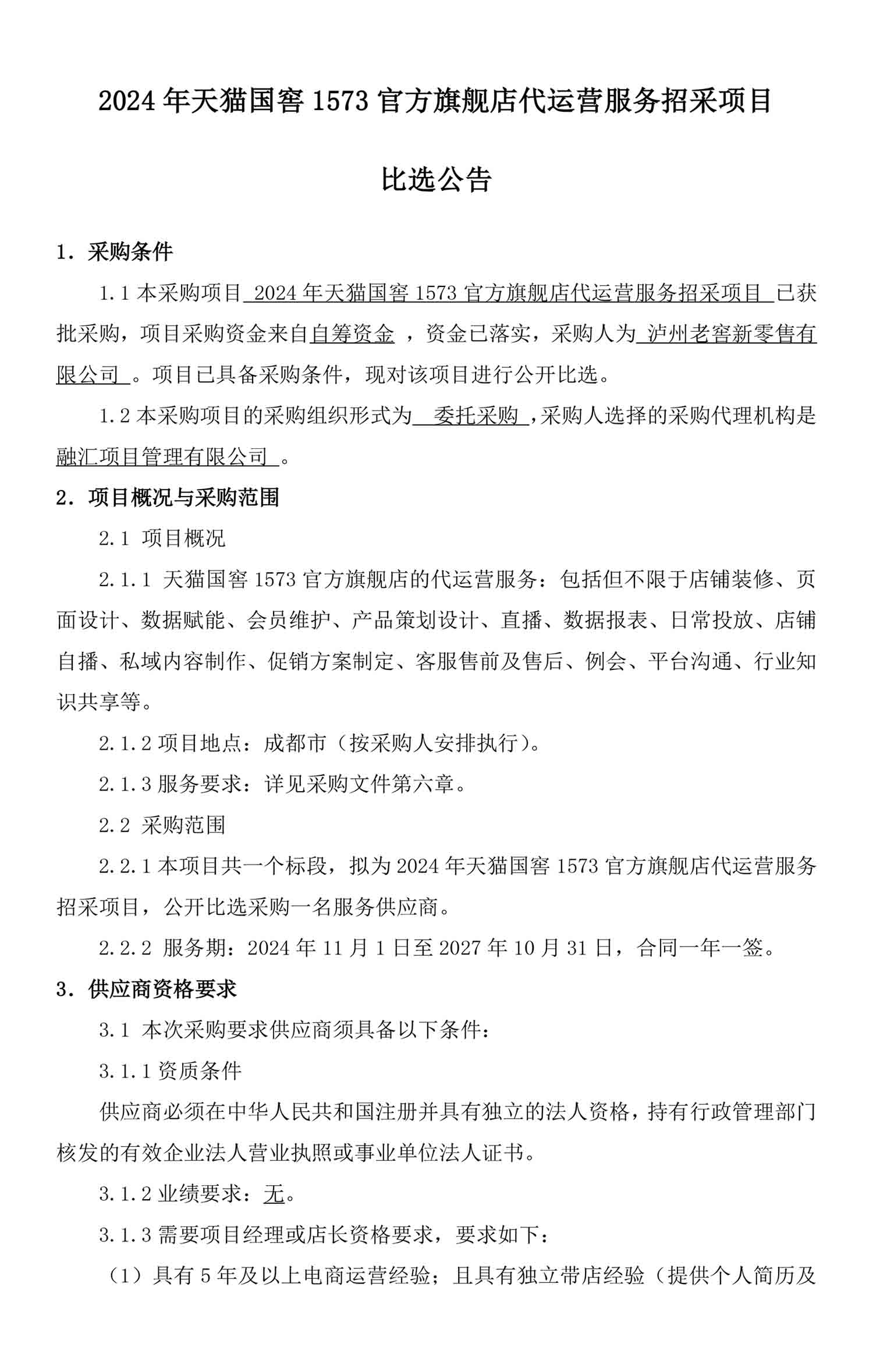 2024年天猫国窖1573官方旗舰店代运营服务招采项目比选公告