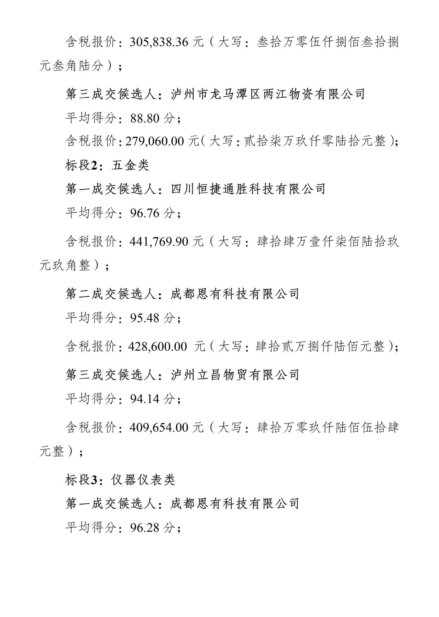 泸州老窖酿酒有限责任公司2024年9月备件采购项目成交候选人公示