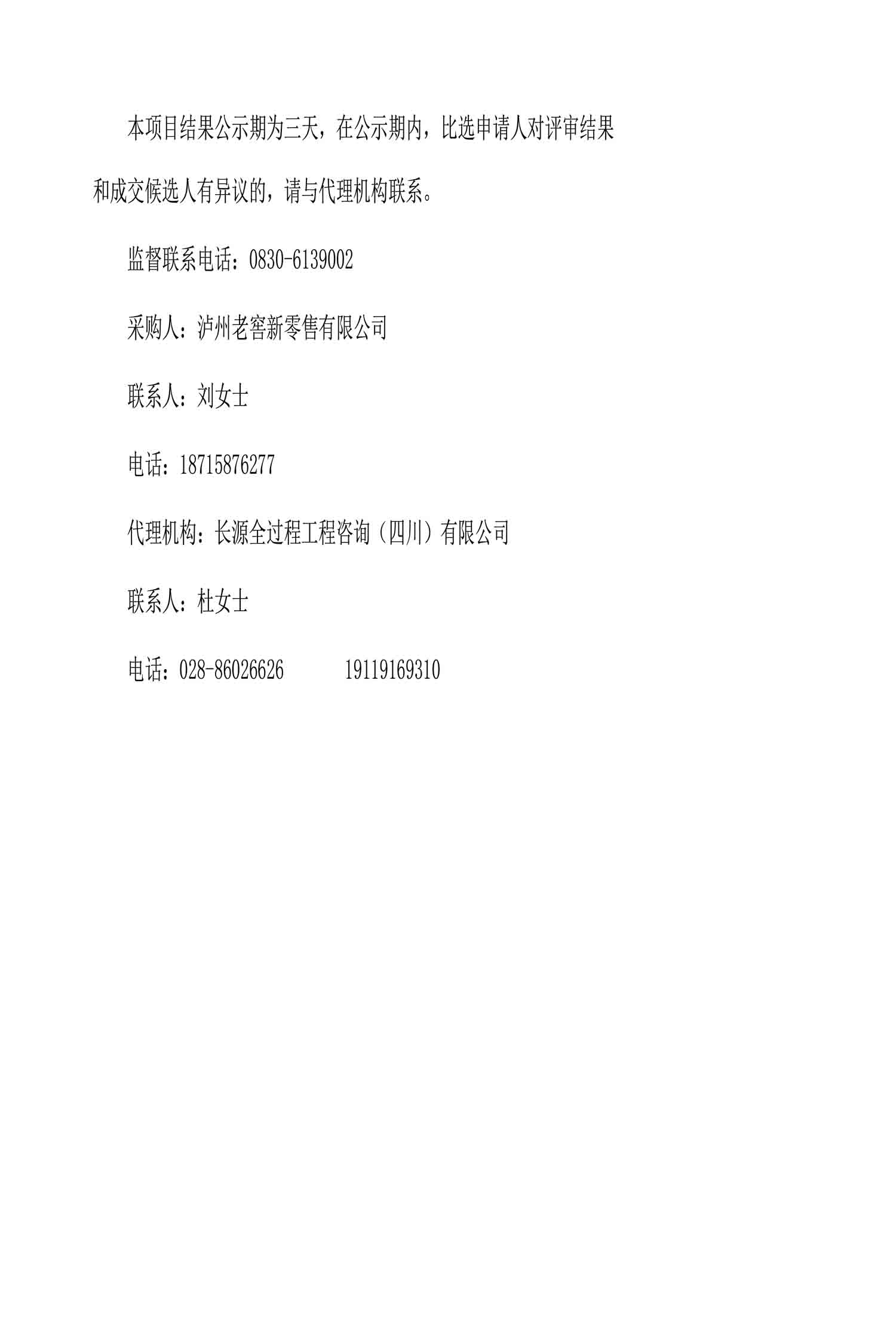 泸州老窖新零售公司2024年38度国窖1573酒2010版礼盒套装采购项目成交候选人及结果公示