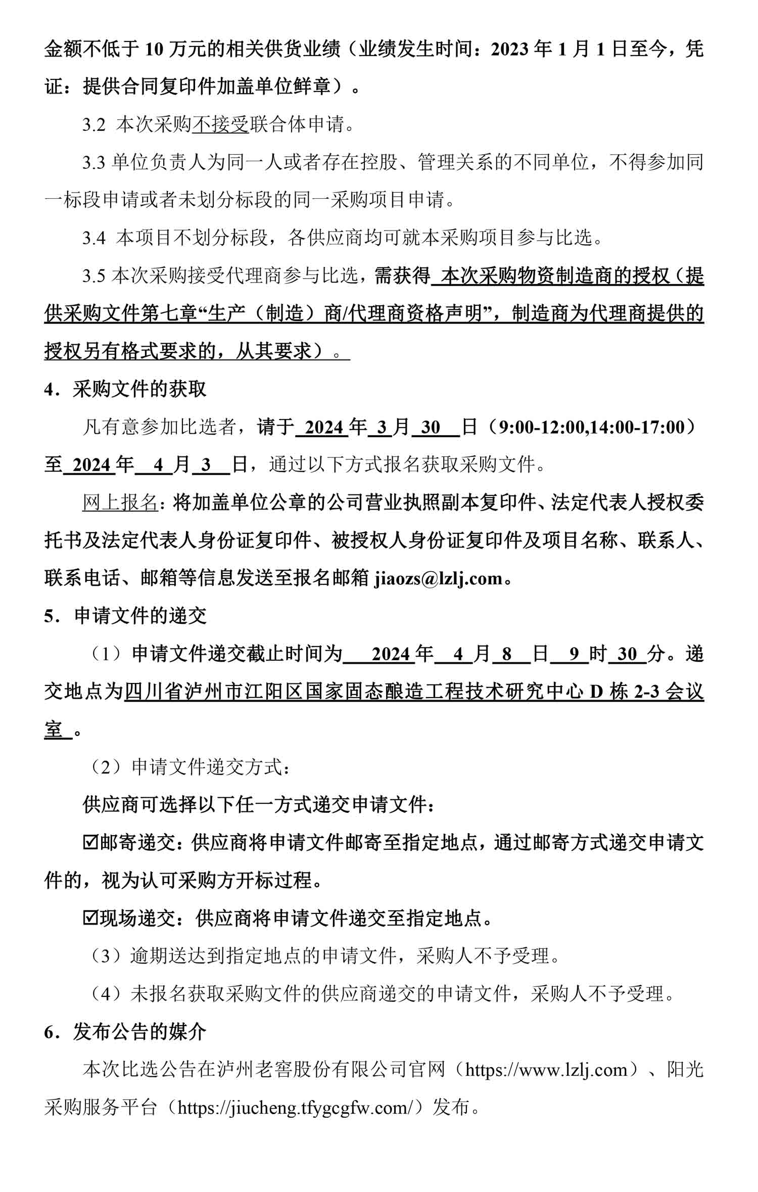 泸州老窖酿酒有限责任公司2024年硅藻土采购比选公告