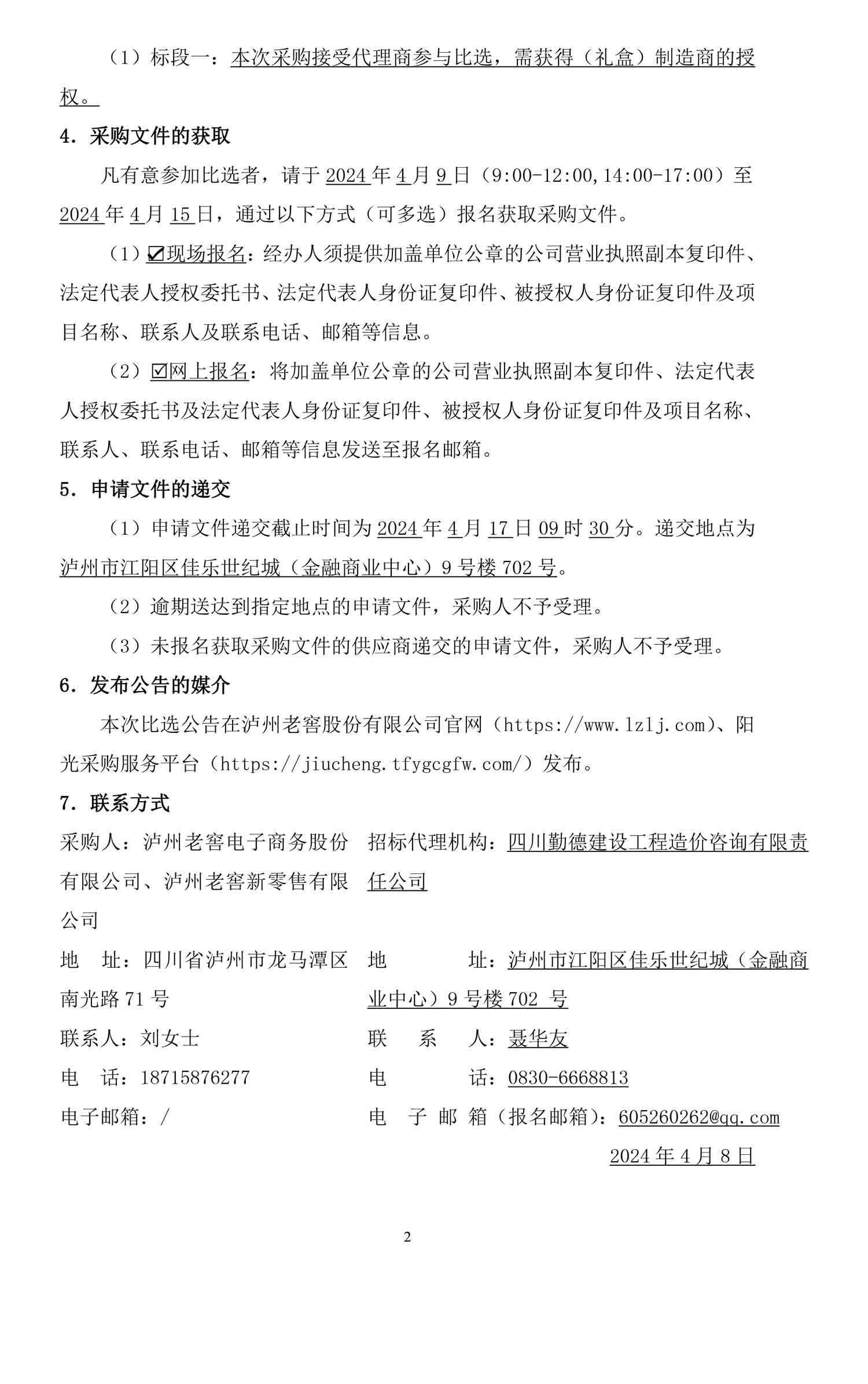 老窖电商/新零售公司2024国窖1573酒君者气宇套装礼盒联合采购项目比选公告