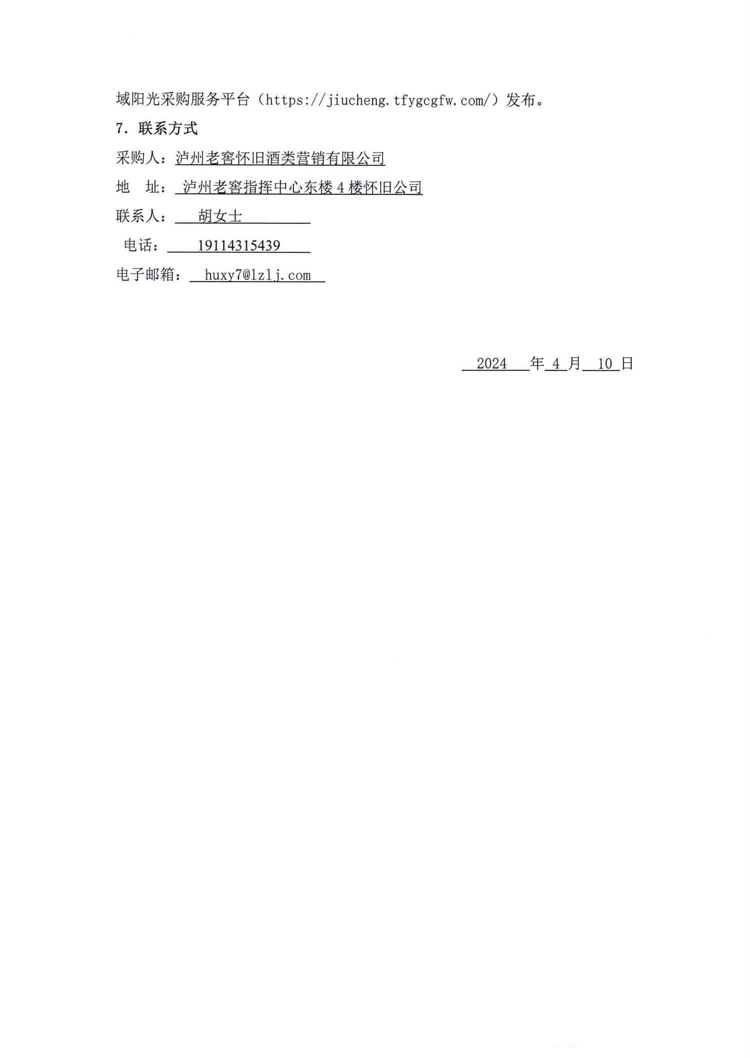 2024年泸州老窖特曲60版时光宴年度招标项目比选公告
