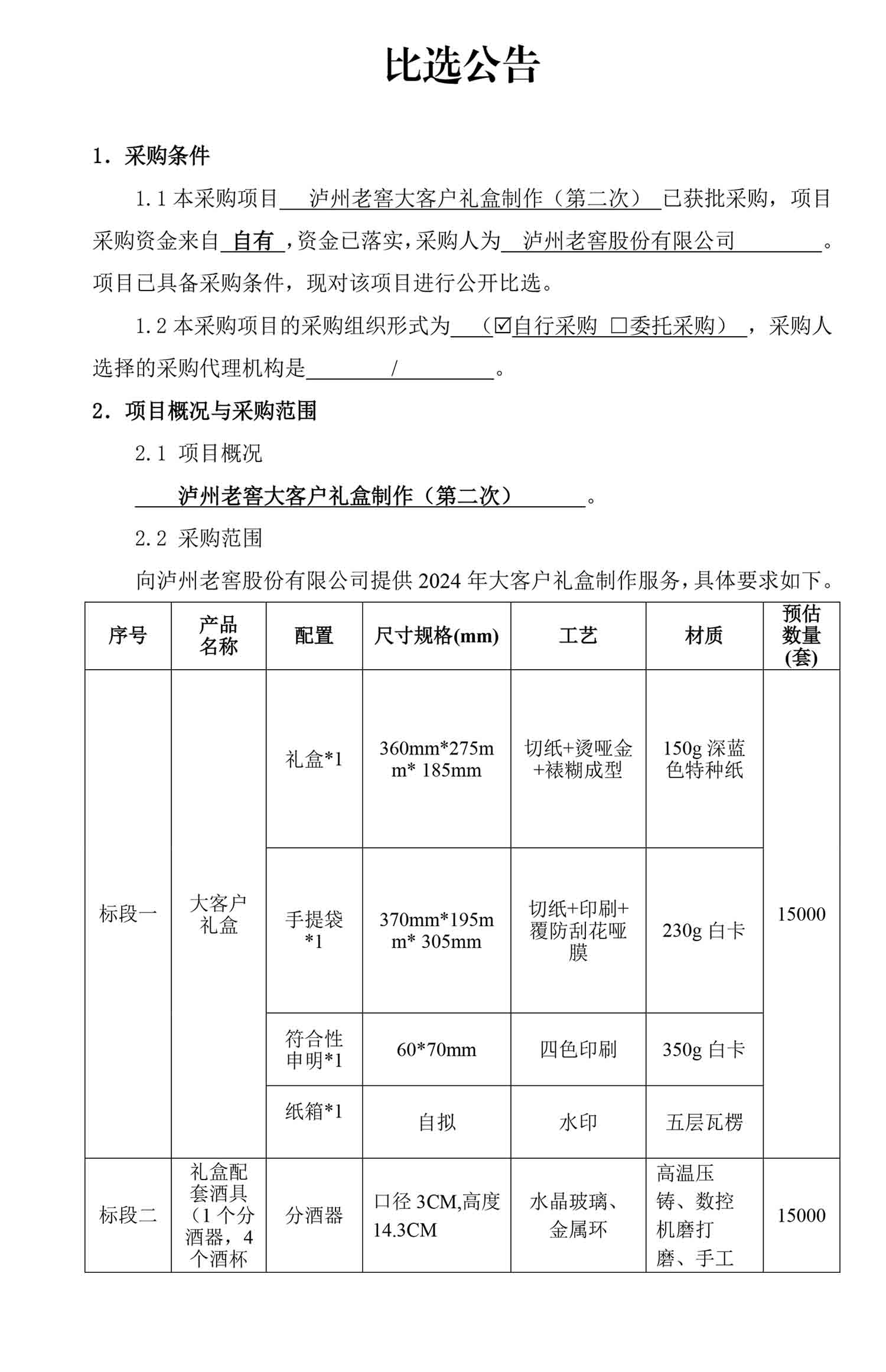 泸州老窖大客户礼盒制作(第二次)比选公告