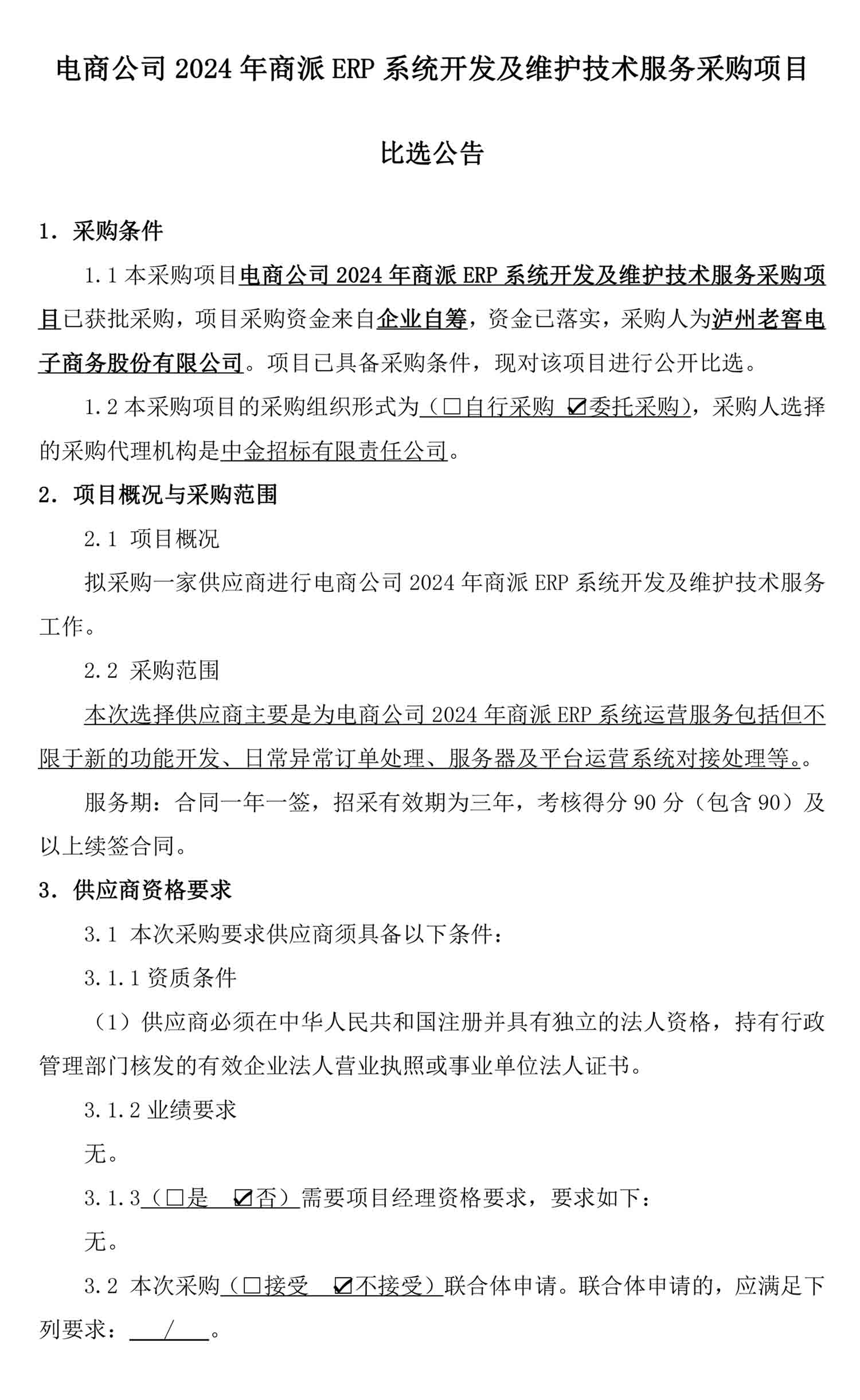 电商公司2024年商派ERP系统开发及维护技术服务采购项目比选公告