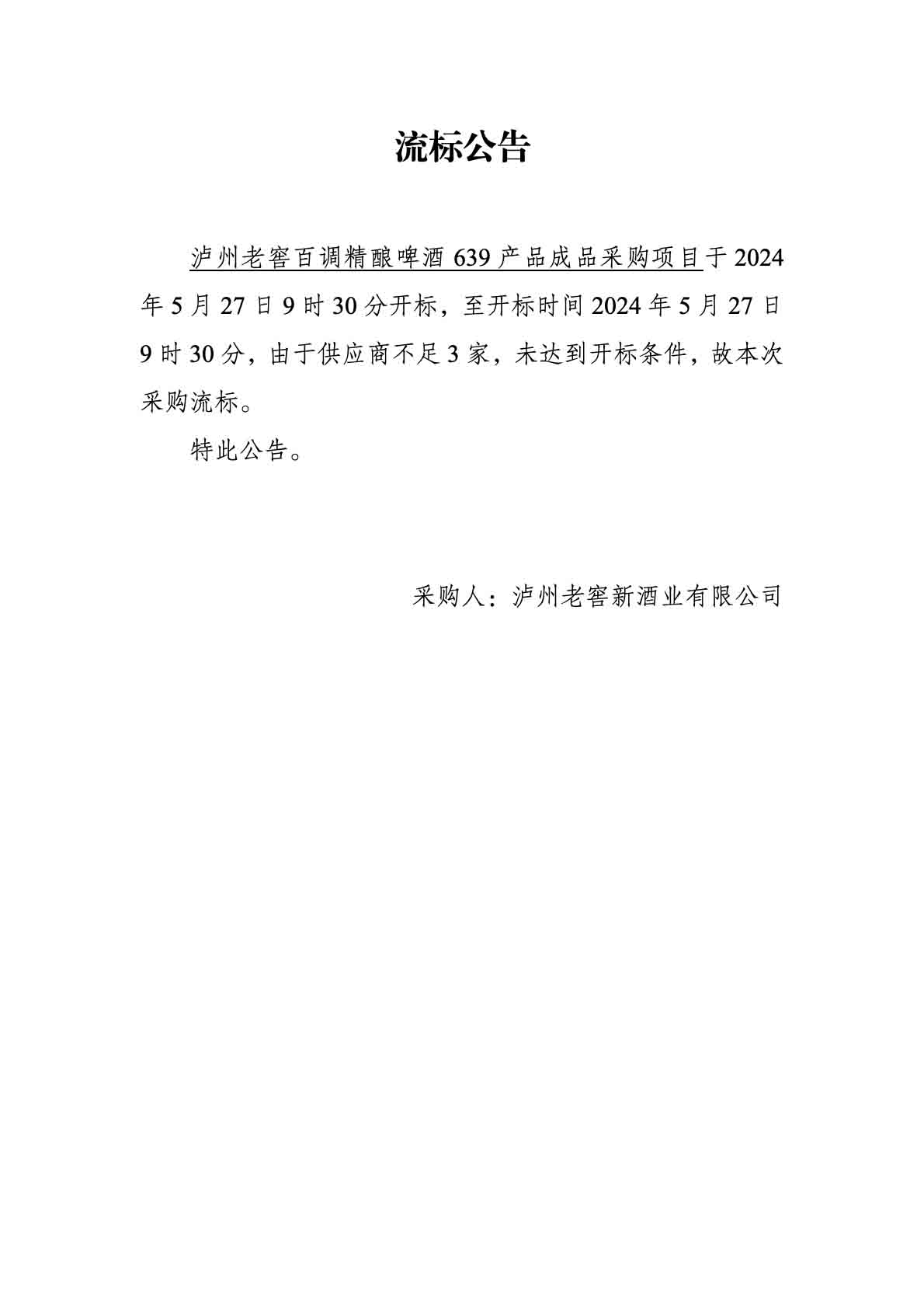 泸州老窖百调精酿啤酒639产品成品采购项目流标公告