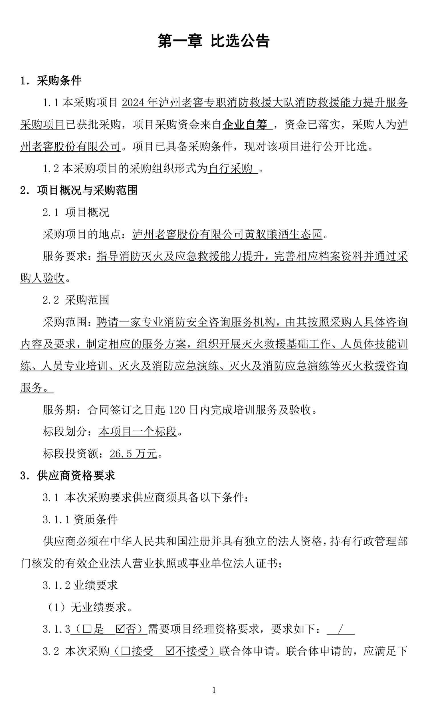 2024年泸州老窖专职消防救援大队消防救援能力提升服务采购项目比选公告