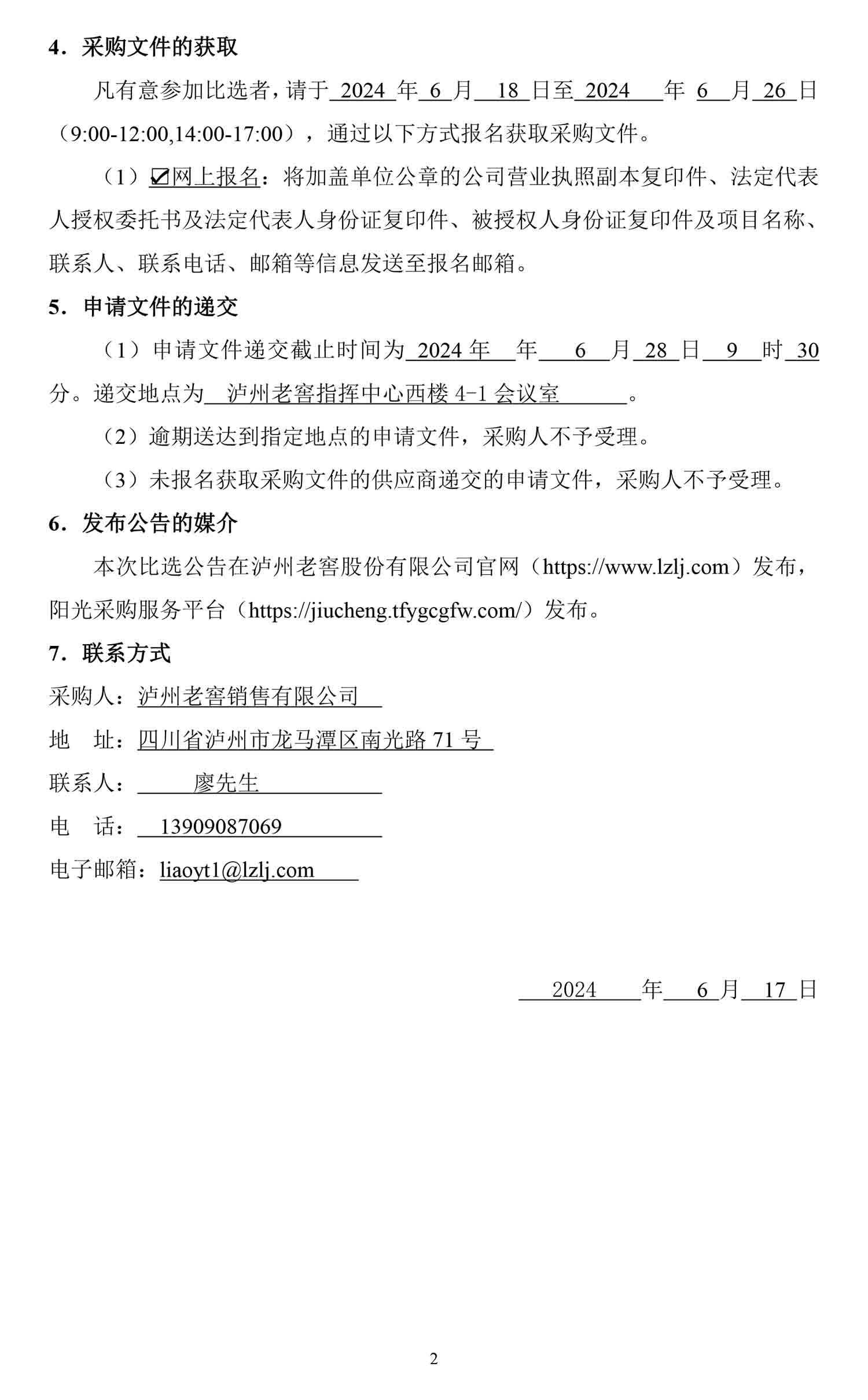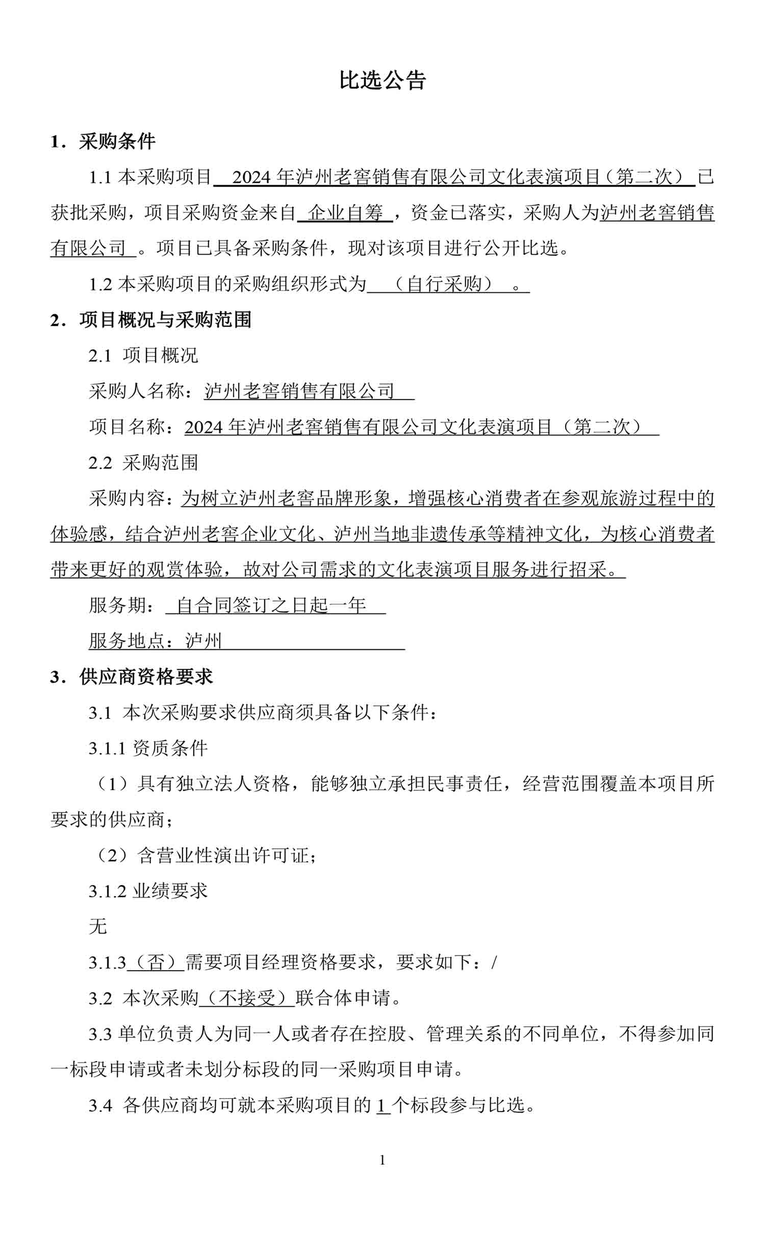 2024年泸州老窖销售有限公司文化表演项目(第二次)比选公告
