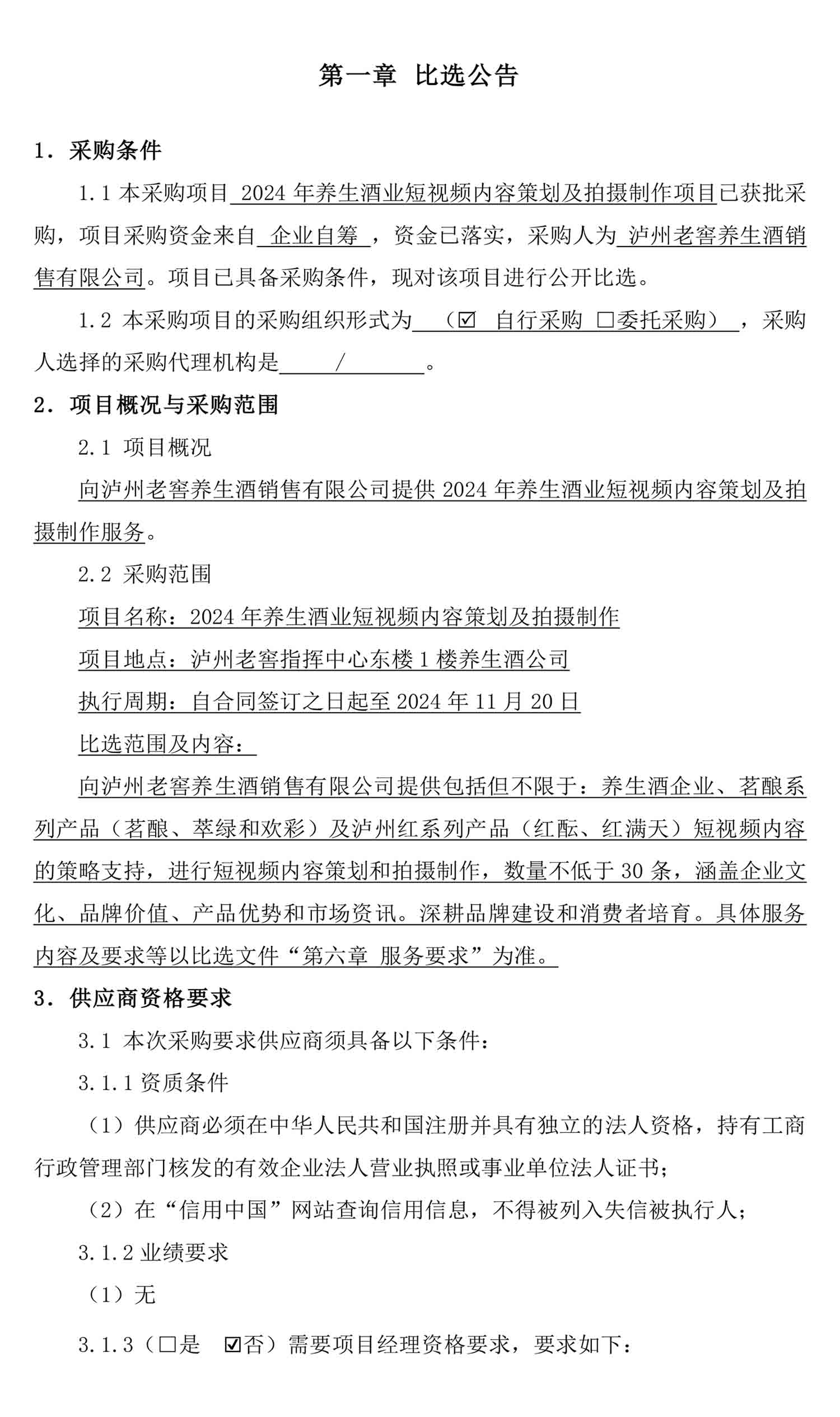 2024年养生酒业短视频内容策划及拍摄制作项目比选公告