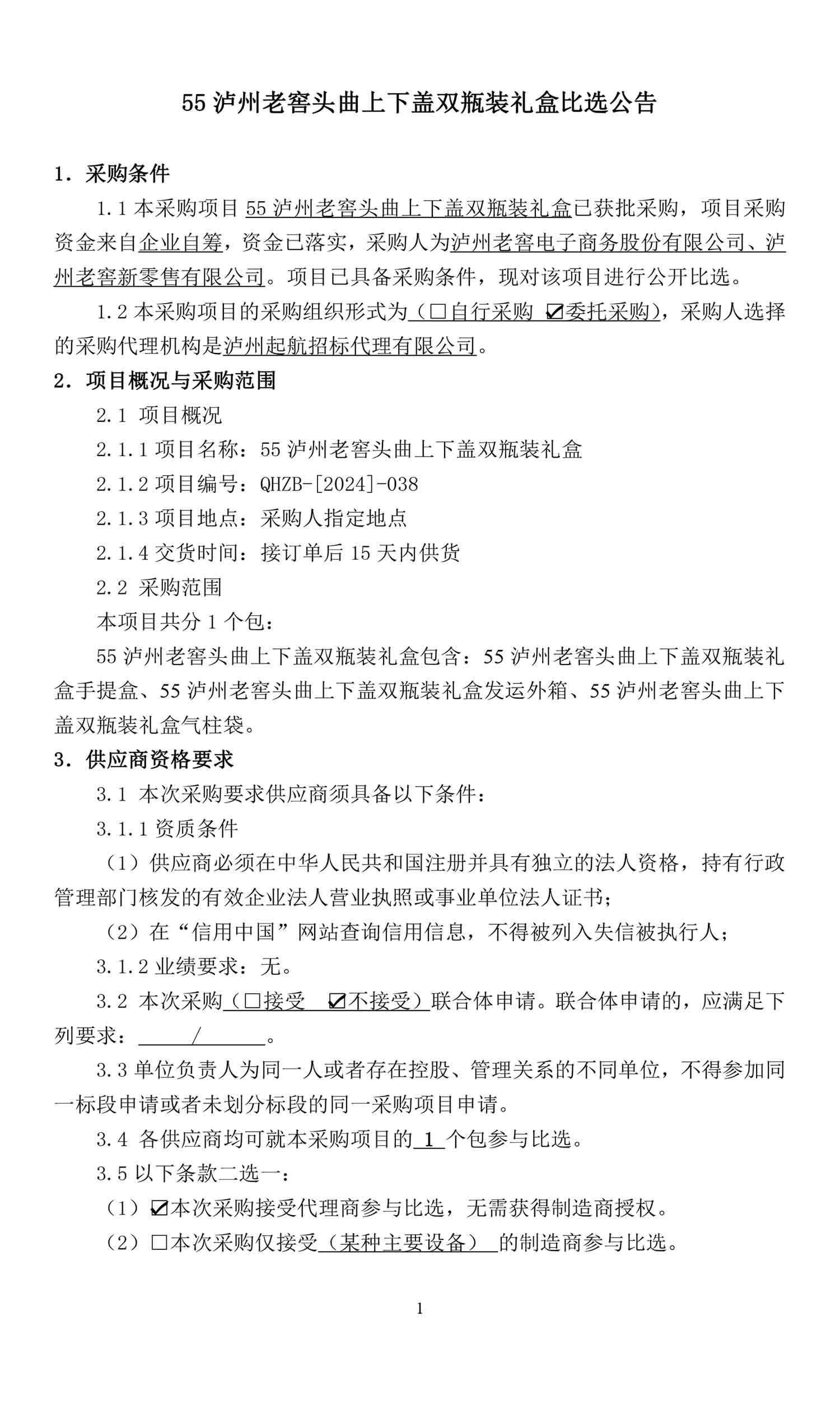 55泸州老窖头曲上下盖双瓶装礼盒比选公告