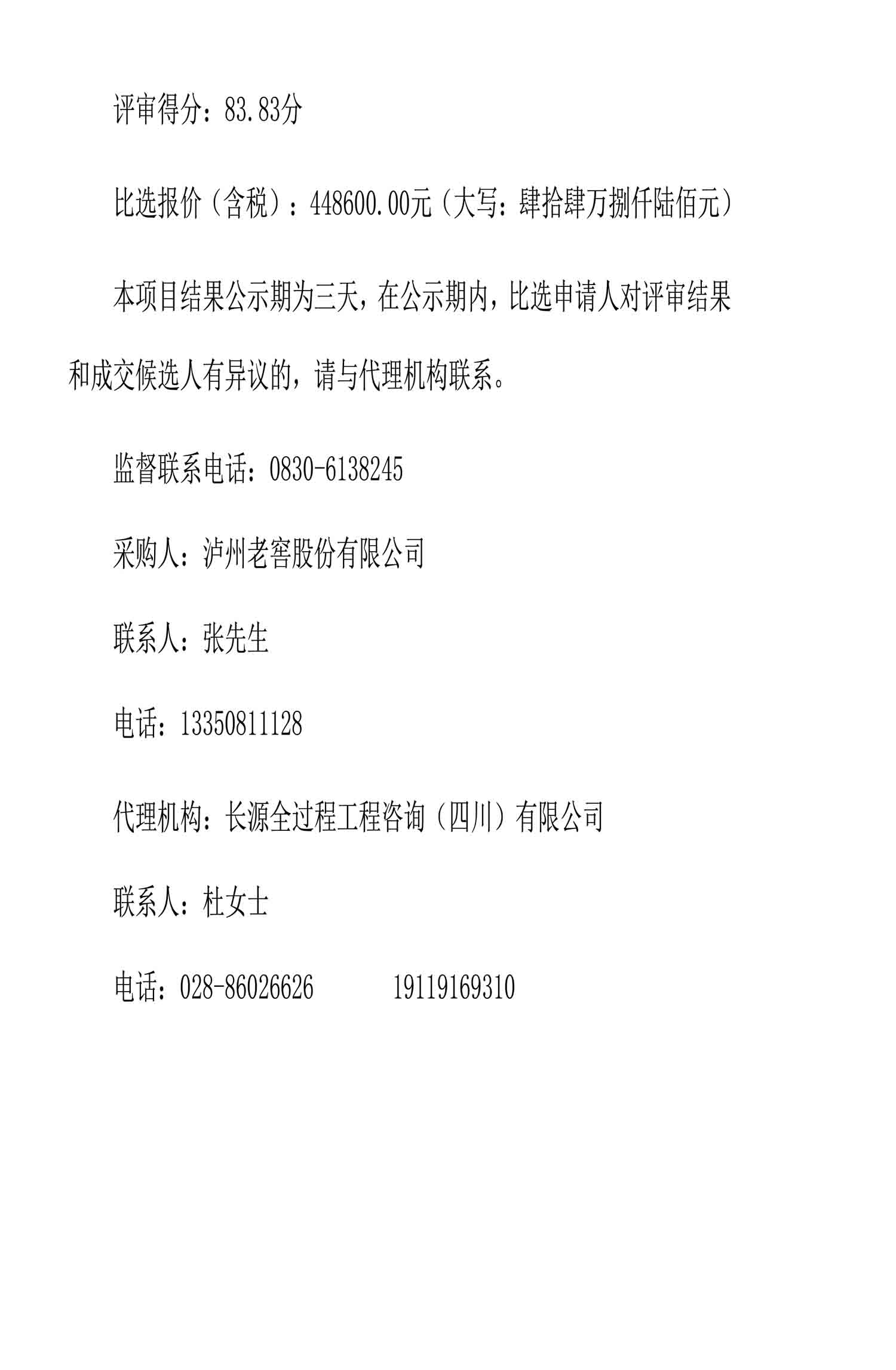 2024年度泸州老窖消防设施检测服务项目成交候选人及结果公示
